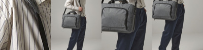 Triple compartment design. Laptop compatible up to 17". Padded laptop compartment. Document section. Detachable adjustable shoulder strap with pad. Zippered front pocket. Organiser section. USB memory stick loops. Wheelie bag strap. Padded handle. iPad™ m