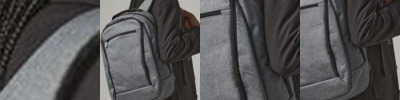 TearAway label for ease of rebranding. External access padded laptop compartment. Plush lined laptop pocket. Laptop compatible up to 15.6". Elasticated cable organiser. Key hook. Internal organiser section. Zippered internal valuables pocket. Zippered side pockets. Lockable zip pullers. Ergonomic padded back panel. Padded adjustable shoulder straps.