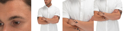 Stand up button down collar. Wrinkle free taping to seams. Rounded hem, back yoke, two darts to back panel. Two button notched cuff with one button pointed placket. Double stitched sleeves and side seams. Spare buttons. Kustom Kit® woven back neck label.