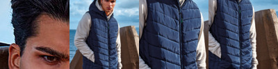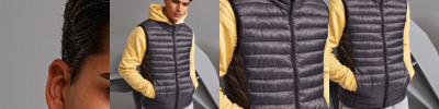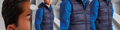 Reverse coil zip on centre front with signature zip pull. Quilted horizontal stitched wide and narrow baffles. Quilted hood with elasticate edge. Fully lined in Polyester. Elasticate armholes for a snugger fit. Internal zipped opening for embroidery access. Reverse coil zip side pockets. Internal zip pockets. Internal storm flap with chin guard. Product contains no branded neck label.* Removable Kimble or looped garment tags. Inner seam label holds important product information on one label with a second label containing brand information which can be cut-away.