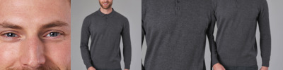 60% cotton/40% acrylic. Piqué collar. Three self colour button placket. Ribbed cuffs and hem.