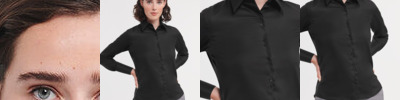 Innovative premium business shirt in a classic style. At the forefront of non-iron technology, this new fabric is designed to keep the wearer looking and feeling smart all day long. Stylish and relaxed long edged collar with fashionable twin button fastening. Shaping at the waist for flattering feminine silhouette. Double turnback hem on sleeves with rounded hem.