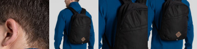 Classic backpack with multiple pockets and a 14 litre capacity. Recycled polyester 900D with EcoShield DWR finish. PU backing and recycled zip tape to side and internal pockets. Padded compartment fits tablet (up to 9") and laptop (up to 13").