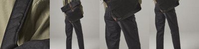 Classic cargo cut, heavy cotton quality, washed cotton, 2 sloping reach in pockets, drawstring.