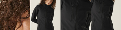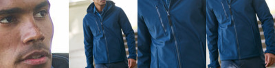 Warm-backed woven softshell XPT waterproof and breathable 3 layer membrane fabric. Fully printable outer fabric, with wind resistant inner membrane. Detachable softshell fabric hood, adjustable shock cord at face and cuff adjusters. 2 zipped lower pockets and 1 zipped chest pocket. .