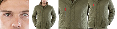 Corduroy collar. Stud front external storm flap. Heavy front 2-way zip. Stud closing patch pocket with handwarmer sides. Zipped external chest pocket. 2 x 2 diamond stitching. Sandwich quilted fleece lining. Rear studded saddle vents. Back panel detail. Hangtag. Fashionable quilted design. Classic styling with contemporary fit. Substantial weight and soft handle. Quiet to wear. Water repellent and windproof.