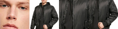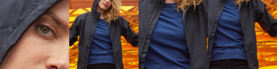 Zip fastening with invisible tab and press studs. 2 zipped outside pockets. 1 inside pocket. Detachable hood. Fleece lined collar. Zip access for decoration. BSCI certified.