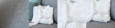 Traditional, soft, textured waffle robe with deep patch pockets and kimono styling.