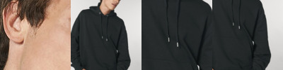 Set-in sleeve. Double layered hood in self-fabric. Flat drawcords in matching body colour with metal tipping and metal eyelets. Inside herringbone back neck tape. Self-fabric half-moon at back neck. Single needle topstitch at neckline. 2x2 rib at sleeve hem and bottom hem. Armhole, sleeve hem and bottom hem with twin-needle topstitch. Kangaroo pocket at front. Relaxed fit with 350gsm brushed fabric.