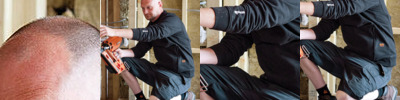 Multi-use cargo thigh pocket with zip. Tough, articulated knee panels. Rubber tear release pocket strip. Critical stress point bar tacking. YKK zip with button fastening. Toughened ankle scuff panel. Triple needle stitched seams. Hand warmer side pockets. Expandable waistband. Reflective detailing. Rear pockets. Hammer loop. Rule pocket. Belt loops. Durable water-repellent finish 3-layer bonded mechanical softshell comprising: outer layer - 100% Polyester; mid-layer - waterproof 8000mm, breathable 3000mvp and windproof TPU membrane; inner-layer - 100% Polyester. Knee panels: PU coated Oxford polyester.
