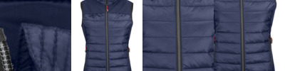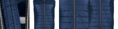 Fashionable quilted design. Contemporary fit. Super air-soft handle with hand filled polyester fibre. Uniquely light for such a padded garment. Quiet to wear. Super lightweight and warm. Easy to pack, compact stowage.