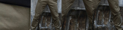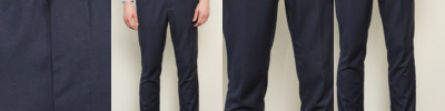97% cotton/3% elastane. Slim fit. Stretch waistband. Flat front. Belt loops. Zip fly with button over. Two side pockets. Rear jetted pockets.