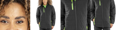 Warm and versatile padded jacket. Water resistant. Wind resistant. Warm polyfill quilted lining. Fully lined hood with adjusters. Full zip with zip guard. Two interior pockets. Two zippered front pockets. Elasticated cuffs. Decoration flexible concealed interior zip. Easy re-label system.