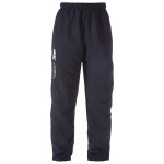 100% polyester. Polyester/cotton 3/4 lining with nylon lower leg lining. Elasticated waistband with inner drawcord. Two side zip pockets. Full length leg side zips. Open hem style with adjuster tabs on leg ends. Branding on right thigh.