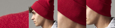 Double layer knit. Dual Style - Cuffed or Slouch. Ribbed cuff. Contrasting pom pom and cuff. Size One Size