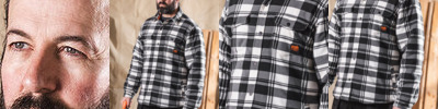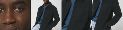 Unisex, unlined shirt jacket. Set-in sleeve. Self-fabric collar with collar stand. Button-down front placket with one button on sleeve cuff. Chest pockets and side seam pockets on both sides. Inside hanger loop in grosgrain tape. Spare buttons attached on inside seam.