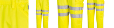 Certified recycled fabric. Reflective tape for increased visibility. 9 pockets for ample storage. Half elasticated waist for a secure and comfortable fit. Knee pad pockets to facilitate knee pads. Extendable leg length (31" to 33"). Rule pocket. Phone pocket. Complies with EN ISO 20471 standard. Certified to EN ISO 20471 after 50x washes. Complies with RIS 3279-TOM for rail industry (orange only). 40+ UPF rated fabric to block 98% of UV rays. CE certified.