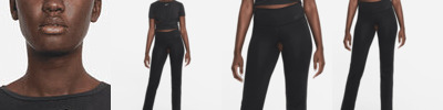 Non-sheer fabric passes the squat test to keep you covered. The sides are seamless and the waistband is contoured with a V shape on the back to give you a smooth silhouette. Stretchy fabric with Dri-FIT technology moves sweat from your skin for quicker evaporation to help you stay dry and comfortable. The design includes a hidden pocket in the high-rise waistband to keep you ready for whatever you tackle in a day. Tight fit for a body-hugging feel.