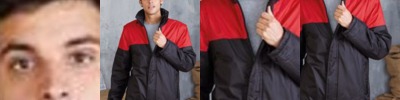 Full length front zip and buttoned placket with snap fasteners. Tightening tab with Velcro at cuffs. Inside collar hood with zip and drawcord with stopper. Tightening drawcord at bottom hem with stopper. Inside zip for easier personalisation.