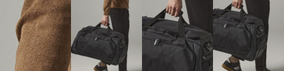 Zippered side pocket, multiple internal pockets, retractable tow handle, detachable adjustable shoulder strap with pad and heavy duty wheels.