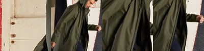 Classic field jacket, water-repellent, durable material, removable lining, hook and loop fastening at the end of the sleeve, adjustable waist, hidden hood.