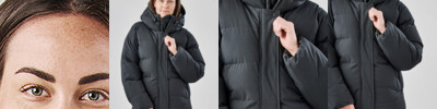 DETAILS: Recycled fabric, detachable and adjustable hood, 700 fill power, water-resistance – 10.000mm, windproof, breathable 3000g/m2/24h, water-repellent finish – Bionic Finish® ECO. SUSTAINABILITY: Outer fabric: Recycled fabric (mainly plastic bottles, packaging, fishing nets or textile waste). Water-repellent – Bionic Finish® ECO impregnation. Reach and Global Compact certified.