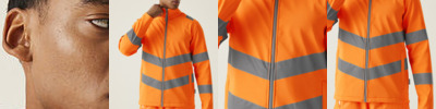 Warm-backed, woven, printable softshell fabric. Certified to EN ISO 20471:2013 A1:2016 Class 3. Orange colourway also conforms to RIS-3279-TOM. Two zipped lower pockets. Made with recycled content. Zip guard for comfort when worn. ID Reflection – angled chevrons inform whether you are facing forwards or away.