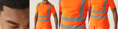 100% polyester, wicking, soft-touch micro mesh – 150gsm. Certified to EN ISO 20471:2013 A1:2016 Class 2. Orange colourway also conforms to RIS-3279-TOM. Fabric provides UPF 40+ protection. Gap in reflective tape at side seams improves comfort and stretch. Side vent detail. Made with recycled content. Ribbed collar.