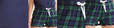 Woven tartan shorts with frill hem. Full elasticated waist with contrast mock drawcord. Tear-out label.