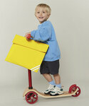 Set-in sleeve. 1x1 rib at neck collar. Inside back neck tape in self-fabric. Sleeve hem and bottom hem with narrow double topstitch. Kids, medium fit, short sleeve, round-neck. 100% organic ringspun combed cotton. Single Jersey. Fabric washed. Vegan certified. Fairwear Foundation certified. Oeko-Tex certified.