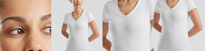 Shaped side seams for a feminine fit. Low V neck with cotton/Lycra® rib neck. Produced using Belcoro® yarn for a softer feel and cleaner printing process. Fine knit gauge for enhanced printability.