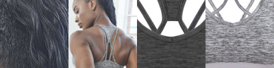 Polyester blended fabric crop bra top with printable elastic and self-fabric cross back detail.