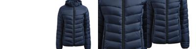 Polyester outer. In transition to using recycled polyester. Repreve® recycled padding. Showerproof. Collar high full length two way zip. Two front zip pockets. Inner zip pocket. Contrast faux suede binding. Drawcord hem.