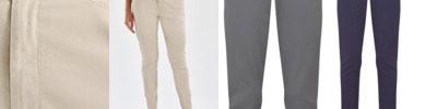 64% polyester/34% viscose/2% Lycra® elastane. Material made from 30% recycled polyester (in transition). Slim fit. Flat front. Belt loops. Zip fly with button over. Two side pockets. Rear pocket. Machine washable.