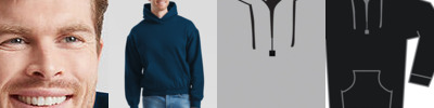 Classic fit. Tear-away label. Double-fabric hood. Front kangaroo pocket. 1x1 rib cuff and waistband.