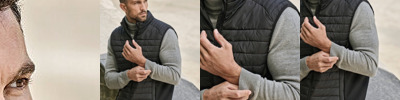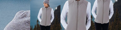 Stormtech Thermal Shell™ insulation. Durable water-repellent finish. High-performance stretch woven outer shell. High-density brushed back knit panels. Zipped on-seam handwarmer pockets. Single-hand hem adjustment. Partially elasticised armhole trim. Contoured seaming. Contains recycled materials.