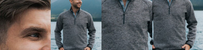 Ultra-soft lightweight sweater knit fleece with brushed interior. Brushed tricot-lined collar. ½-zip front. Raglan sleeves with darted shoulders. Colour-matched trim. Contrast coverstitching. Low-profile chin saver. Elastic hem and cuff trim. Contains recycled polyester.