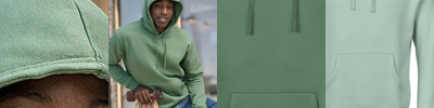 Three-thread fabric. Brushed inside. Ribs with elastane. Double dyed. Double stitched. Double pre-shrunk. Washable at 60˚C.