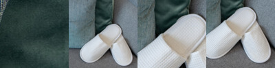 Waffle-fabric slippers. Waffle fabric mule slippers. Closed toe. Matches TC086 Waffle Robe. Size UK 4-7, 8-11