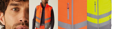 93% Polyester, 7% Elastane. Lightweight four-way stretch outer fabric with durable water-repellent finish. Warmloft insulation, 160gsm. Certified to EN ISO 20471:2013+A1:1026 Class 1. One zipped chest pocket and two lower zipped pockets. Internal pocket. Fleece-lined collar. Stretch binding to armholes and hem. Concealed inner zip for embroidery access. Darker contrast panels, ideal for dirty environments.