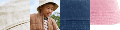 - 100% Heavy washed cotton. Fabric offers protection against sunlight: UPF 50+. Vintage styling. Unisex styling. Stitched ventilation eyelets. TearAway label for easy rebranding. Available in two sizes: S/M (3–6 years) and M/L (7–12 years).