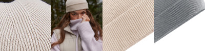 50% Viscose, 30% Polyester, 20% Nylon. Single-layer knit. Unisex design. Ombré-coloured design. Engineered crown for maximum comfort. Cuffed design for optimal decoration. TearAway label for easy rebranding.