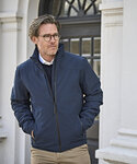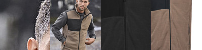 Tailored fit. Two hidden front pockets with zippers. Inner pockets. Elastic banding at the bottom hem. Elastic side panels and sleeves. SBS zippers. Prepared for embroidery. Stand-up collar. Certified recycled polyester.