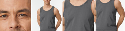 Deluxe 30's Softstyle® yarns. Wide straps. Rib knit trim applied to neckline and armholes. Twin needle bottom hem. Quarter-turned to eliminate centre crease.