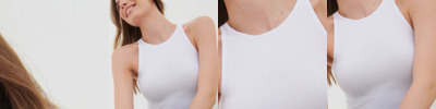 Scoop neck. Elastic racer back with 'laser cut' holes. We recommend using block out vinyl and inks.Product contains no branded neck or waist label. Removable Kimble or looped garment tags. Inner seam label holds important product information on one label with a second label containing brand information which can be cut-away.