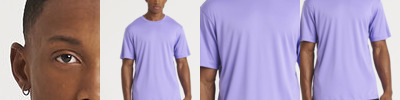 Wicking fabric. Stretch. Crew neck. Short sleeve. Lightweight. Twin-needle stitching on hem and arms. Recycled polyester. We recommend using block out vinyl and inks.Product contains no branded neck or waist label. Removable Kimble or looped garment tags. Inner seam label holds important product information on one label with a second label containing brand information which can be cut-away. UPF 40+.