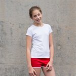 Wicking fabric. Stretch. Crew neck. Short sleeve. Lightweight. Twin-needle stitching on hem and arms. Recycled polyester. BSCI certified. SEDEX certified. WRAP certified. We recommend using block out vinyl and inks.