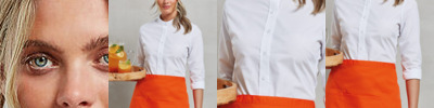 Short style bar apron. 3 open pockets. Size: One Size Dimensions Width 60cm. Drop 33cm.