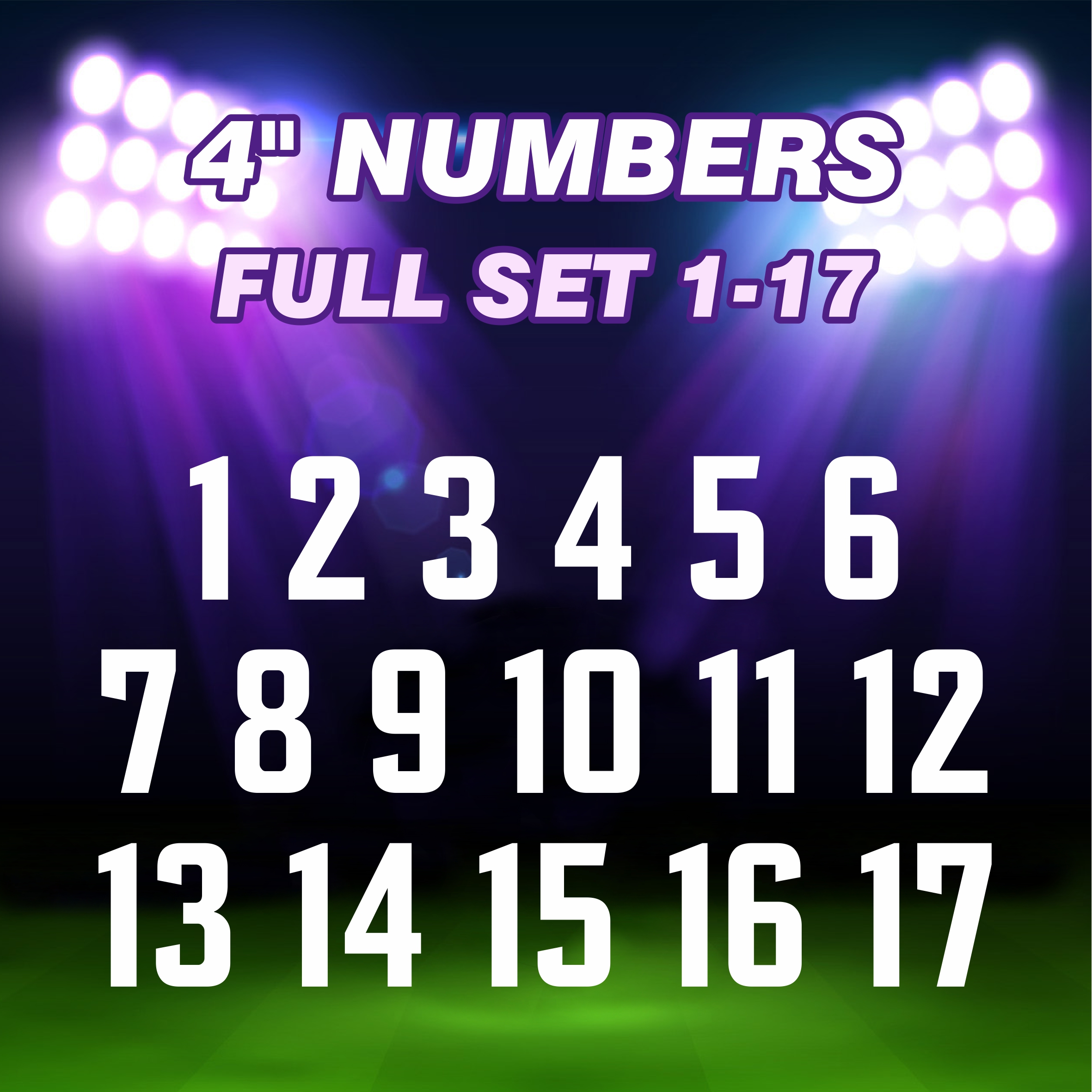 SN006 Copy of Sports Numbers - 4 inch - WITH OUTLINE numbers 1-17