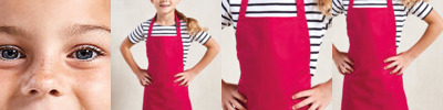 Classic Premier children's bib apron available in 12 colours. Self fabric neckband. Self fabric ties 50cm long. Width: Infant 43cm, Junior 48cm. Length: Infant 53cm, Junior 63cm. Made from Oeko-Tex® Standard 100 fabric. These aprons have an adjustable nec